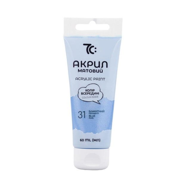 Фарба акрилова 7С 60 мл блакитний перламутр у тубі — це якісний матеріал для творчості, призначений для використання на різних поверхнях: папері, полотні, дереві, металі та інших. Фарба має насичений блакитний відтінок, швидко висихає та легко наноситься. Зручна туба об'ємом 60 мл забезпечує комфортне використання та економну витрату. Підходить для художників, дизайнерів і любителів творчості.