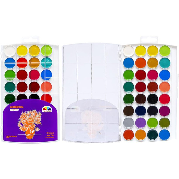 Акварель Творчість 32 кольорів, без пензлика, пластик