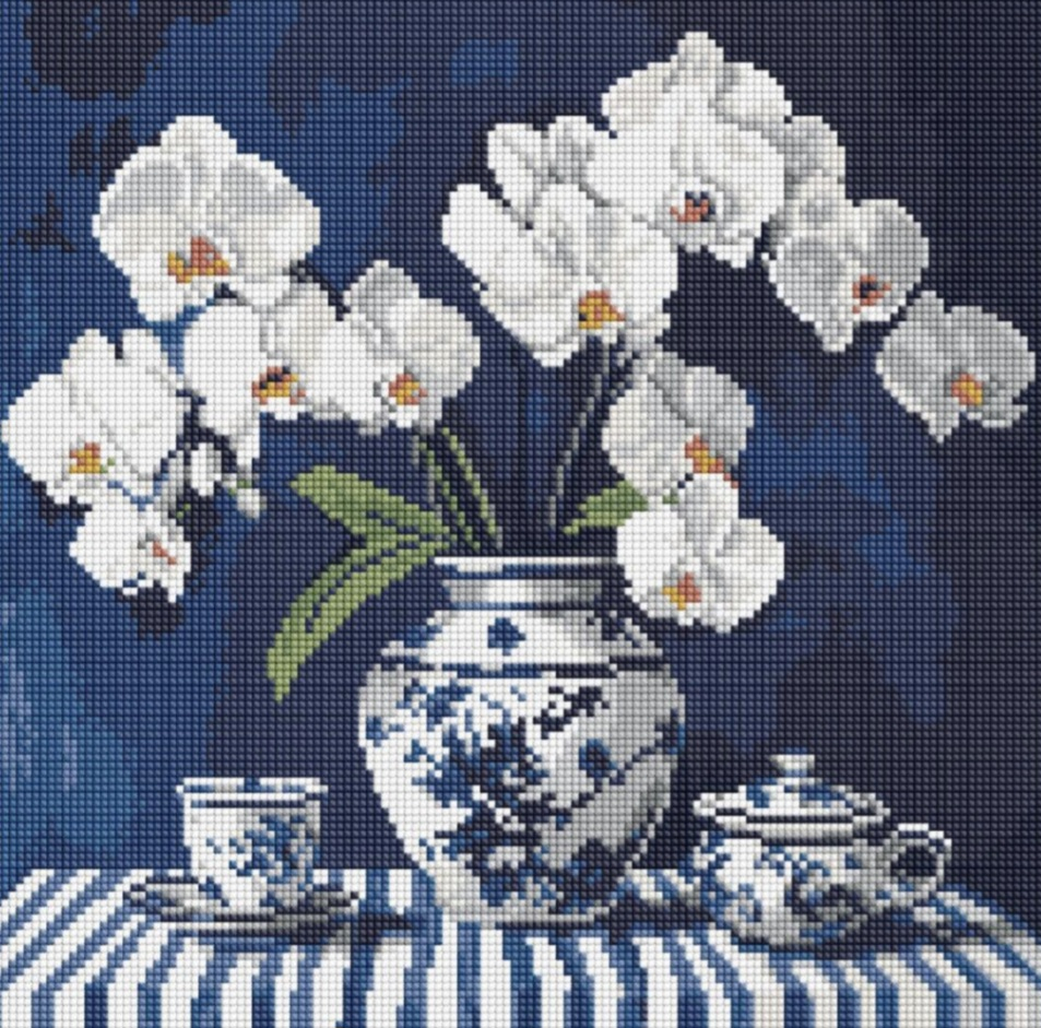 Алмазна мозаїка "Орхідея в порцеляні" 40х40 см