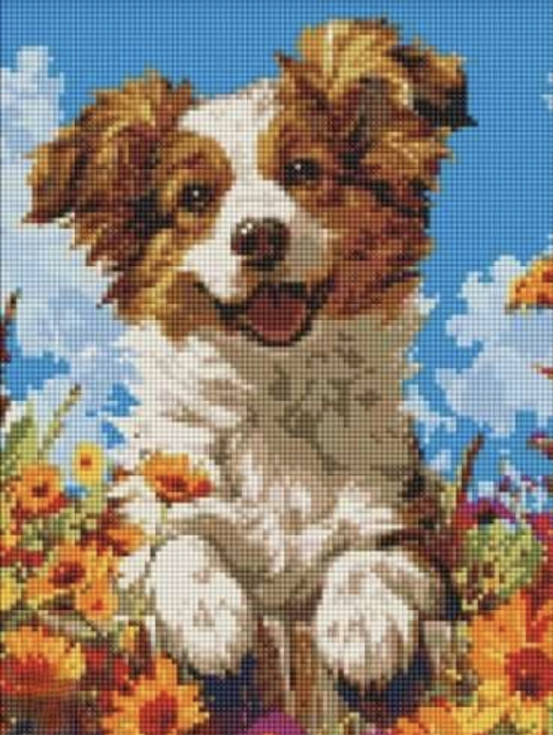Алмазна мозаїка "Собака у квітах" 30х40 см