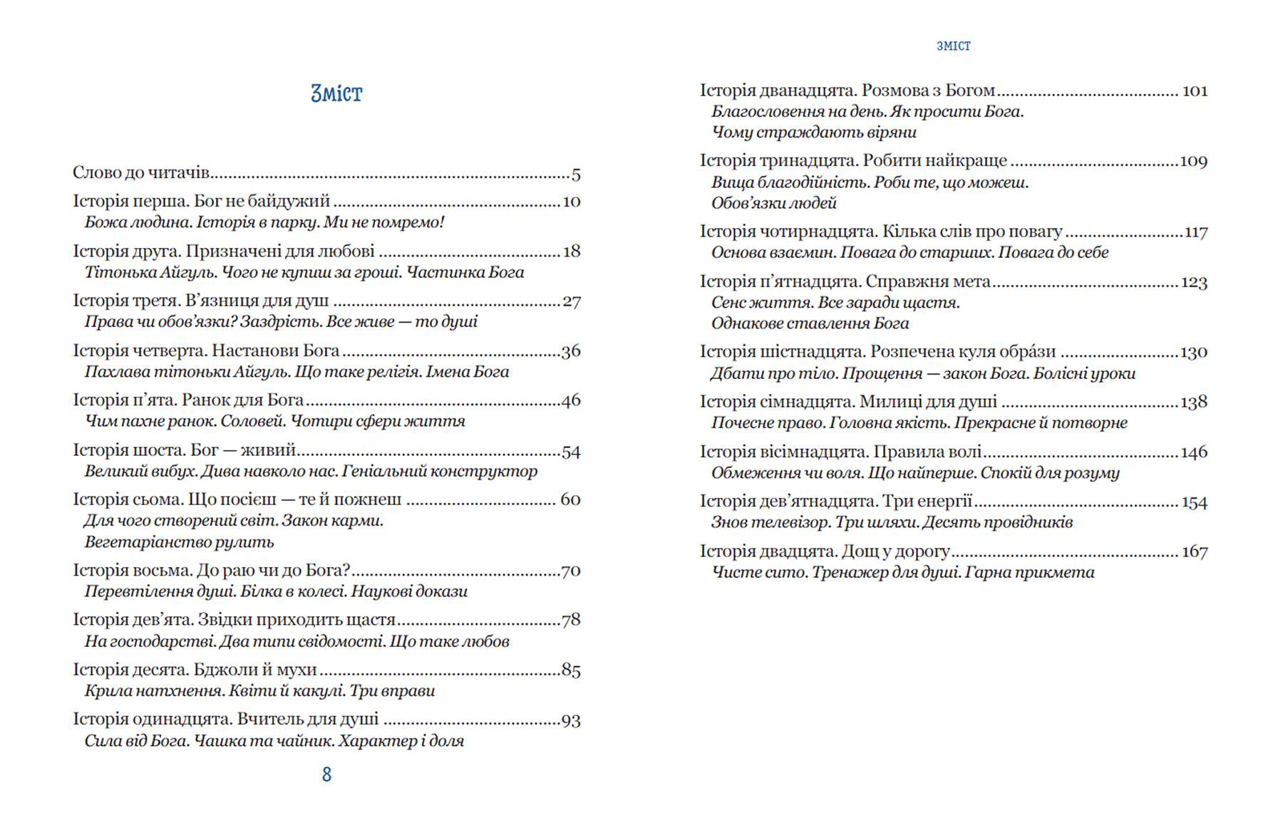 Ця книжка у цікавій то доступній формі росповідає про споконвічні закони буття. Вони існують і діють незалежно від того, чи віримо ми в них, чи дотримуємося, а чи ігноруємо. Знання цих законів допоможе кожному навчитися жити щасливо - в гармоніі та злагоді з собою, з іншими та з Богом. І діти, й дорослі знайдуть тут відповіді на найважливіші й найглибші свої запитання. Для читачів віком від десяти років.
