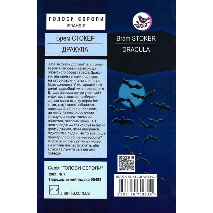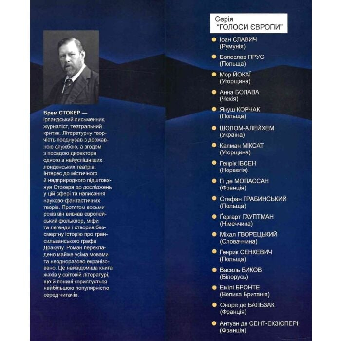 Поклавши в основу своєї оповіді легенди різних народів світу, оповивши їх атмосферою вікторіанської Англії, Брем Стокер (1847 1912) у романі “Дракула” створює власний міф, що згодом дасть початок усім сучасним творам про романтизованих вампірів. Книга написана у формі щоденникових нотаток, газетних статей та листів, тож пропонує читачеві одночасно кілька поглядів на ситуацію, а інтимність, з якою герої діляться своїми почуттями й переживаннями, нікого не зможе залишити байдужим.