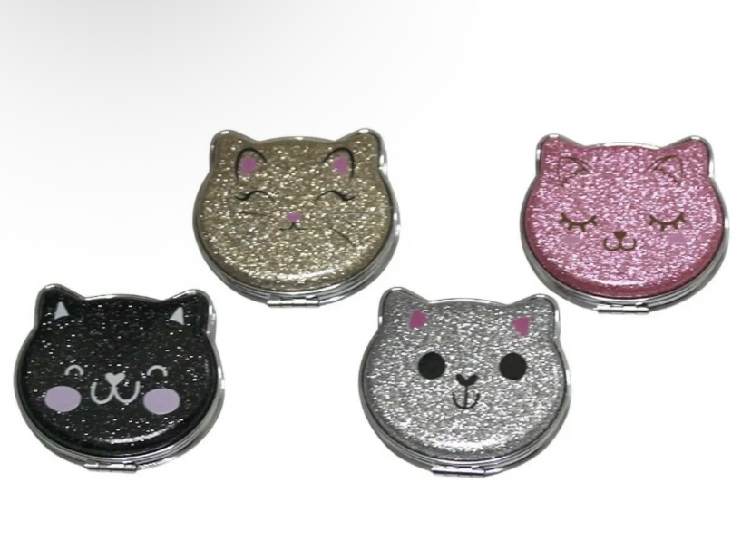 Дзеркало двостороннє розкладне з глітером “Котик” – 12 шт