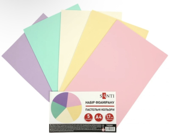Фоаміран EVA SANTI 200×300 мм, 1,7 мм – набір “Пастельні кольори”