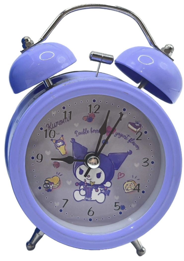 Маленький металевий годинник-будильник з дизайном «Зайчик Kuromi», діаметром 12 см. Ідеальний для дитячої кімнати або робочого столу, допомагає слідкувати за часом і прокидатися вчасно.