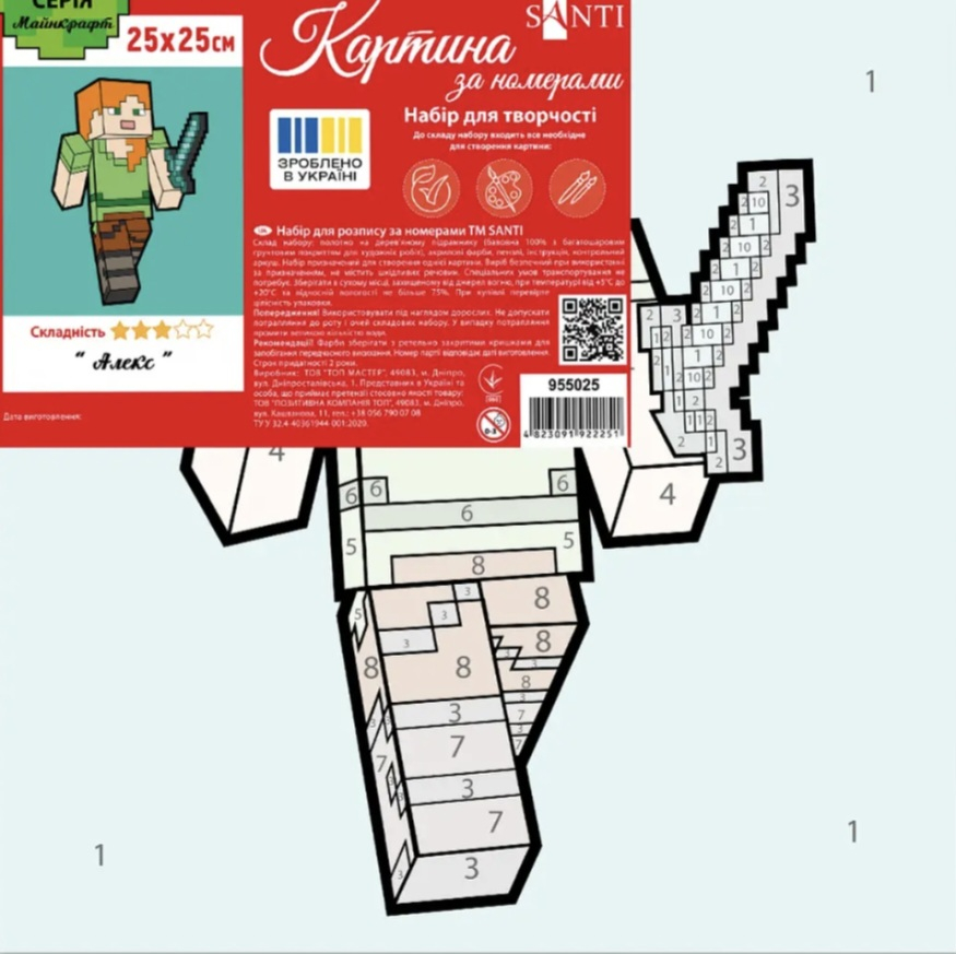 Картина за номерами SANTI "Майнкрафт Алекс" 25х25 см, полотно корольове