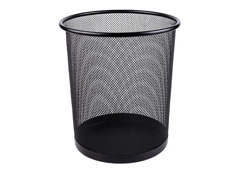 Кошик для сміття з металевої сітки чорного кольору — практичний та лаконічний аксесуар для офісу або дому. Сітчаста конструкція забезпечує хорошу вентиляцію, запобігає накопиченню запахів і дозволяє легко контролювати рівень наповнення. Завдяки збільшеним розмірам підходить для інтенсивного щоденного використання.