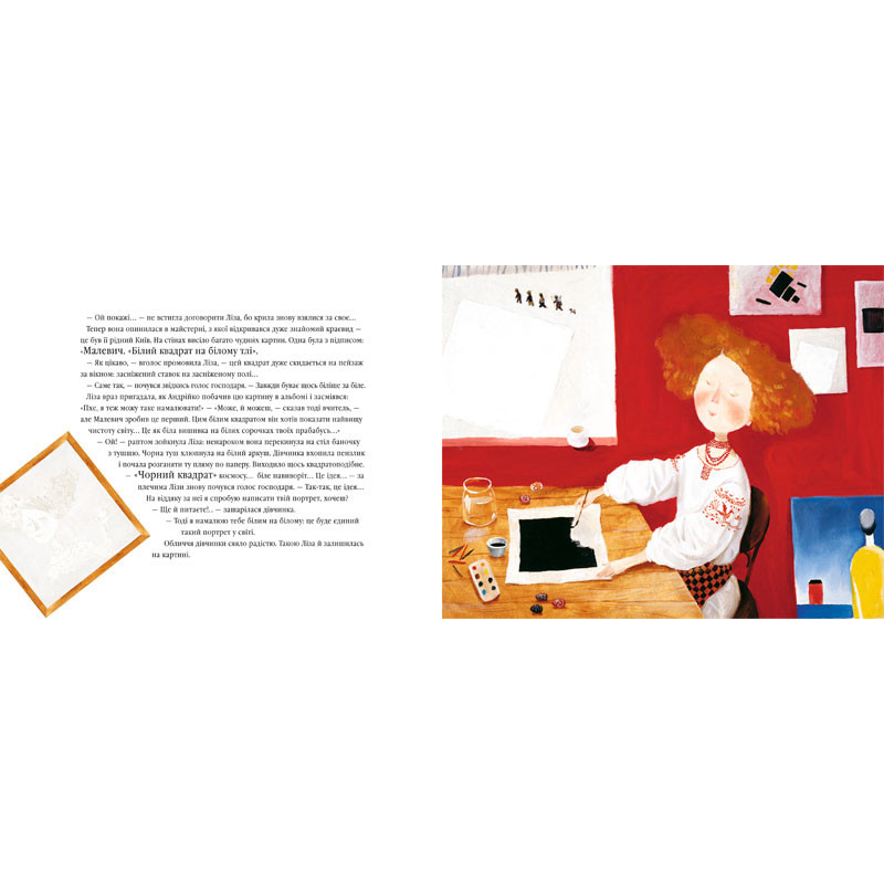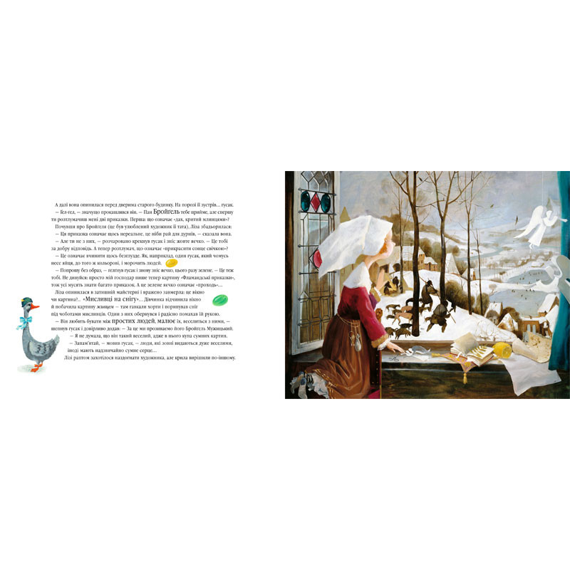 Казково-пізнавальна історія про дівчинку, яка завдяки крилам, що їх винайшов Леонардо да Вінчі, побувала в майстернях найяскравіших постатей світового малярства — від Ботічеллі до Далі.
