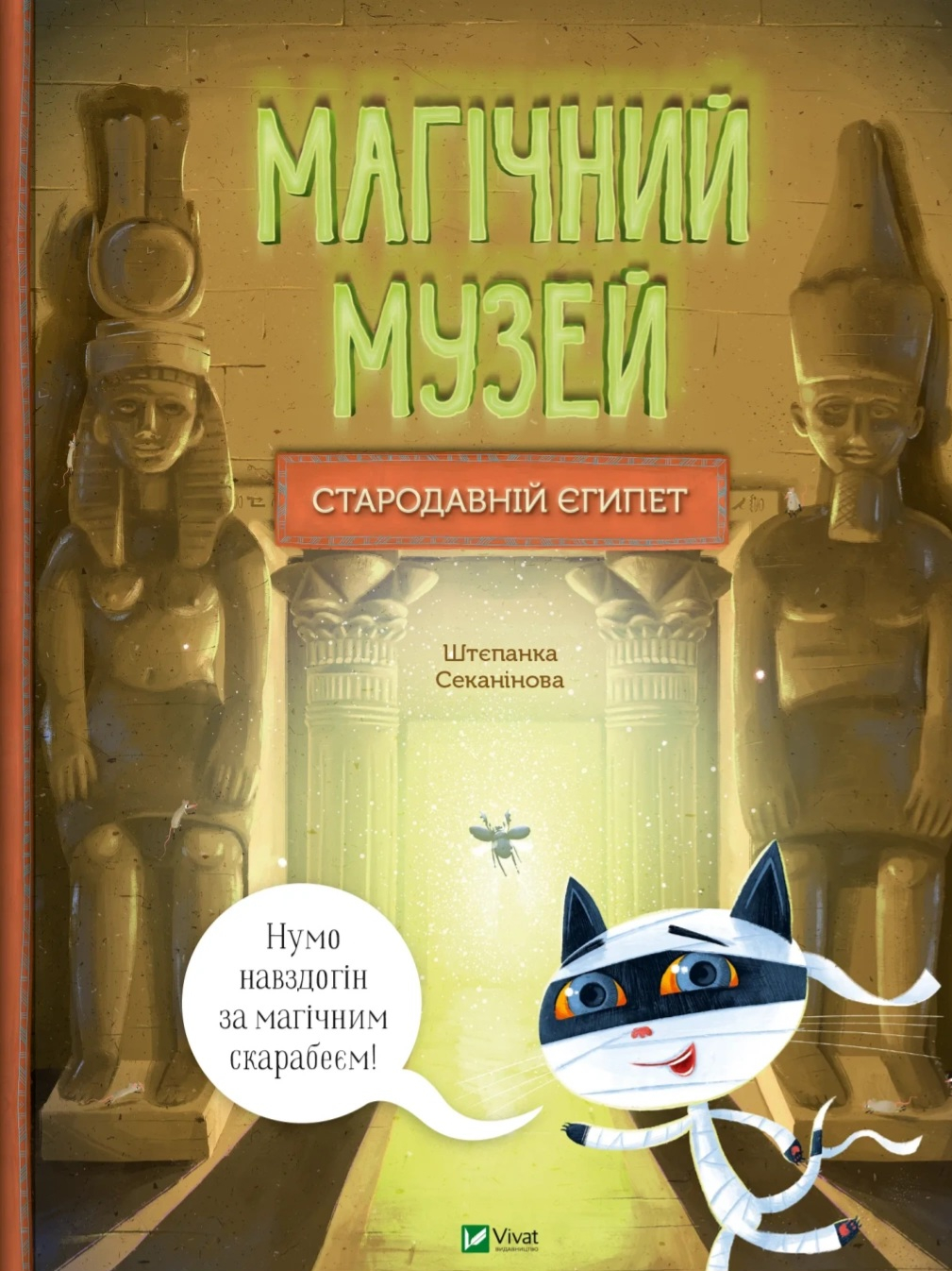 ного скарабея подіє: музейні експонати Стародавнього Єгипту оживуть, а з ними котик, який ще пам’ятає Клеопатру. Завдання котика полягає в тому, щоб усе привести до ладу, спіймати скарабея та зняти закляття. Утім, ця справа нелегка. Разом із котиком та сірими помічницями-мишками ви пробіжитеся музеєм навздогін за чарівним скарабеєм. На цьому шляху мимохідь ви дізнаєтеся багато цікавого про неймовірну цивілізацію Стародавнього Єгипту.