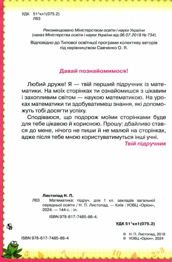 Математика 1 клас підручник НУШ Листопад