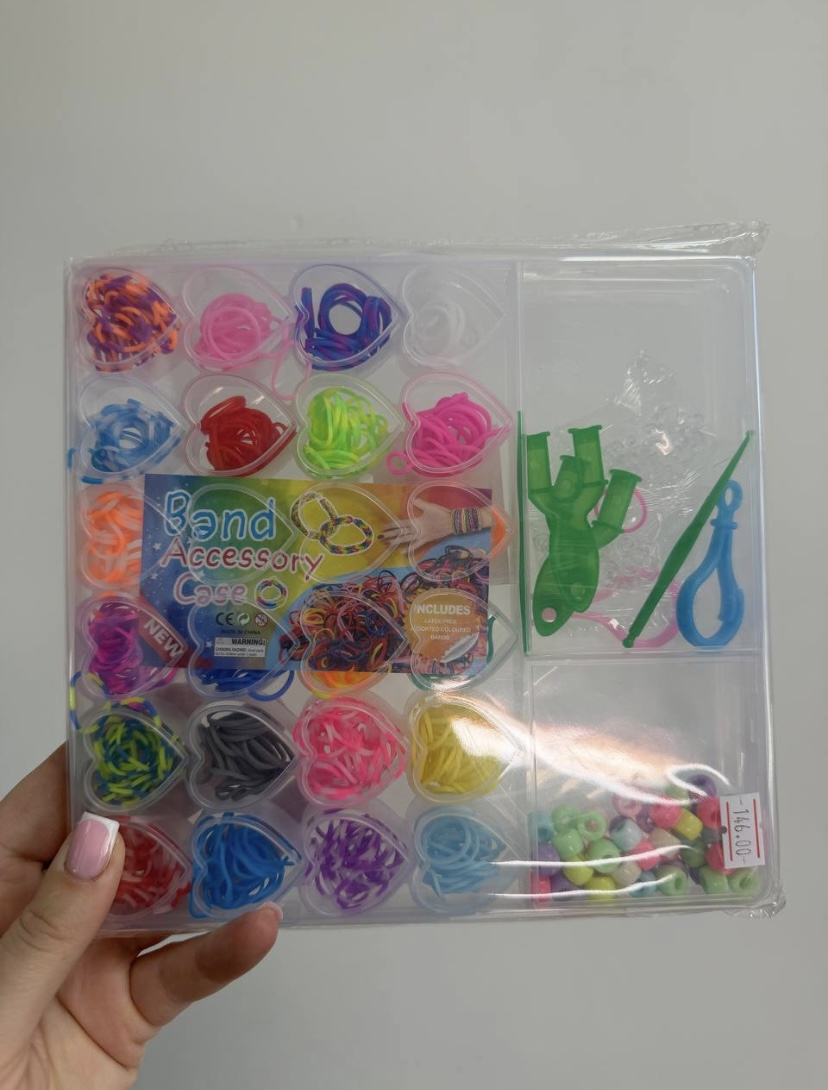Набір для творчості «Плетіння з резинок» — це все необхідне для створення яскравих браслетів, аксесуарів та прикрас власними руками. Він допомагає розвивати дрібну моторику, креативність та терпіння у дітей і дорослих.