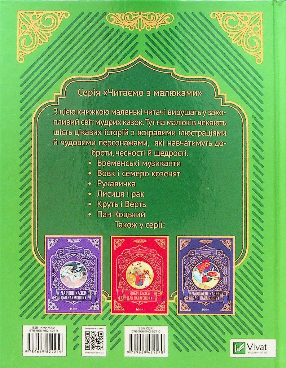 З цією книжкою маленькі читачі вирушать у захопливий світ мудрих казок. Тут на малюків чекають шість цікавих історій з яскравими ілюстраціями й чудовими персонажами, які навчатимуть доброти, чесності й щедрості.