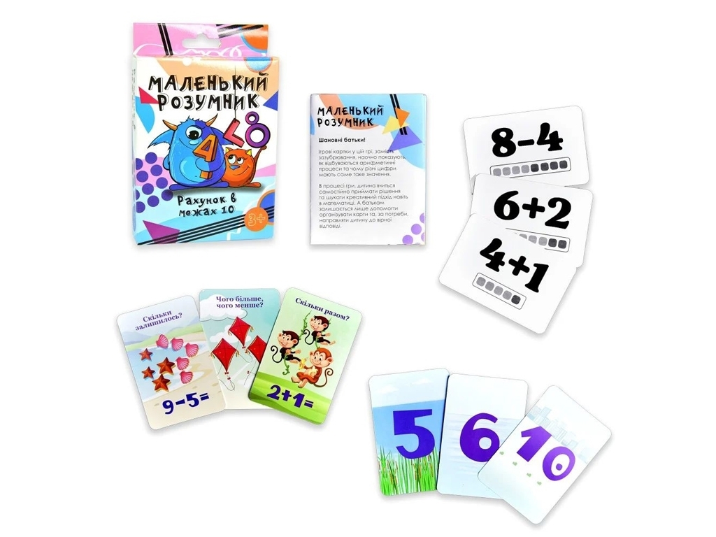 Настільна гра "Маленький розумник" (Strateg 30271) - це розвиваюча гра українською мовою, в ній 48 карток з задачами різного рівня складності, який підвищується поступово.