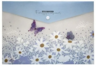 Папка-конверт на кнопці формату A4 з ніжним пастельним принтом “Квіти та метелики”. У наборі 4 різні дизайни, що дозволяють обрати стильний варіант для документів, листів або творчих робіт.