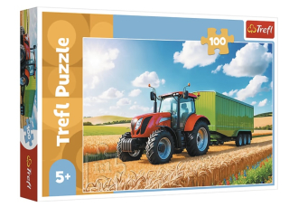 Яскравий дитячий пазл Trefl “Сільськогосподарська техніка — трактор з причепом” створений для дітей 5–7 років. Складається з 100 великих елементів, що робить його чудовою розвагою для маленьких шанувальників машин та техніки.