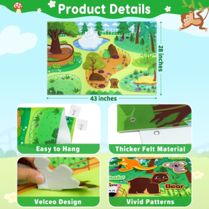 Плакат ігровий фетровий "Зоопарк", розмір: 101х65 см, липучки, гачки на стіну, в пакеті, інтерактивний плакат для малюків MK73105