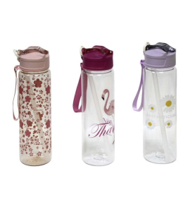 Пляшка для води 800 мл з трубочкою “Квіти”