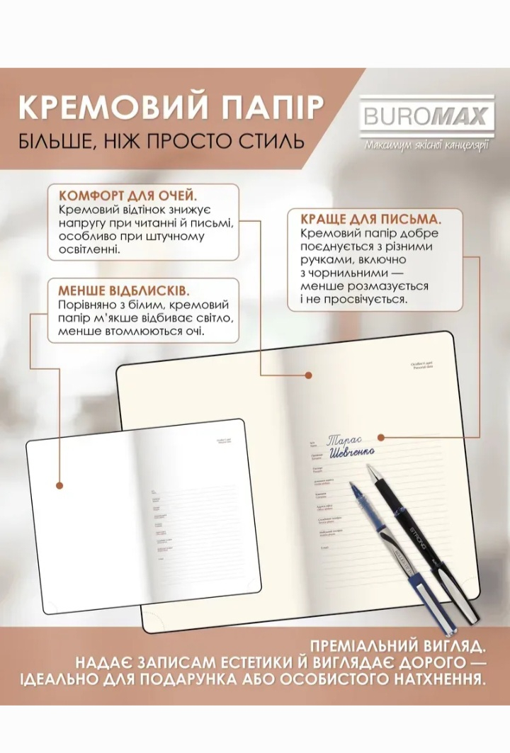 - Внутрішній блок: офсетний папір кремового кольору щільністю 70 г/м²