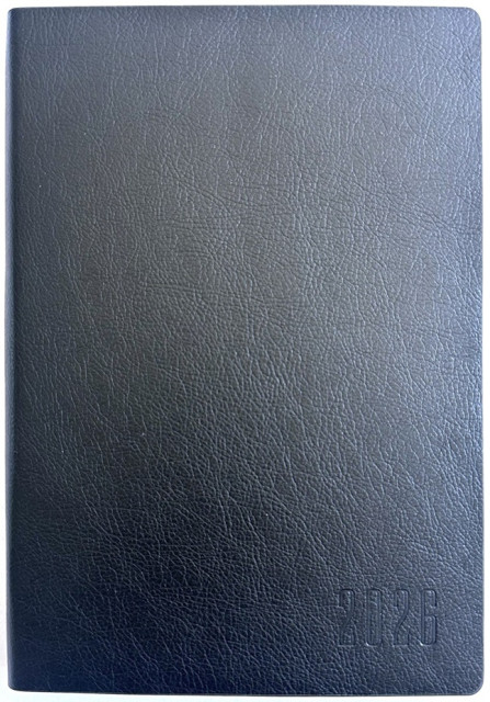 Щоденник Датований 2026, А5, 320 стор., папір кремового кольору 70 г/м2, блок 2 кольори Українською мовою. Гнучка Обкладинка зі штучної шкіри.