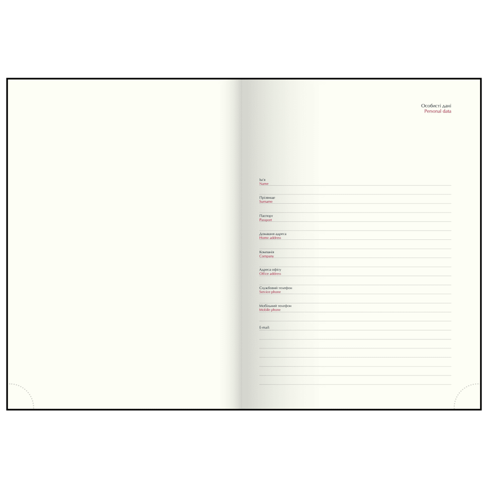 BUROMAX MADERA у форматі А5 — це класика у сучасному виконанні. Обкладинка зі штучної шкіри з матовою фактурою прикрашена сліпим тисненням року і написом, а зріз внутрішнього блоку гармонійно тонований у колір обкладинки. Блок містить 336 сторінок кремового офсетного паперу щільністю 70 г/м2, надрукованих у двох кольорах — сірому та бордовому. Для зручності використання передбачені закладка-лясе, перфоровані куточки, форзаци у тон обкладинки, а також широкий довідковий розділ і планінг на 2026 рік. Датовані сторінки з організатором часу від 7:00 до 21:00 допоможуть впорядкувати справи, а стильна індивідуальна упаковка робить щоденник чудовим подарунком. Модель підтримує персоналізацію методом сліпого чи фольгованого тиснення.
