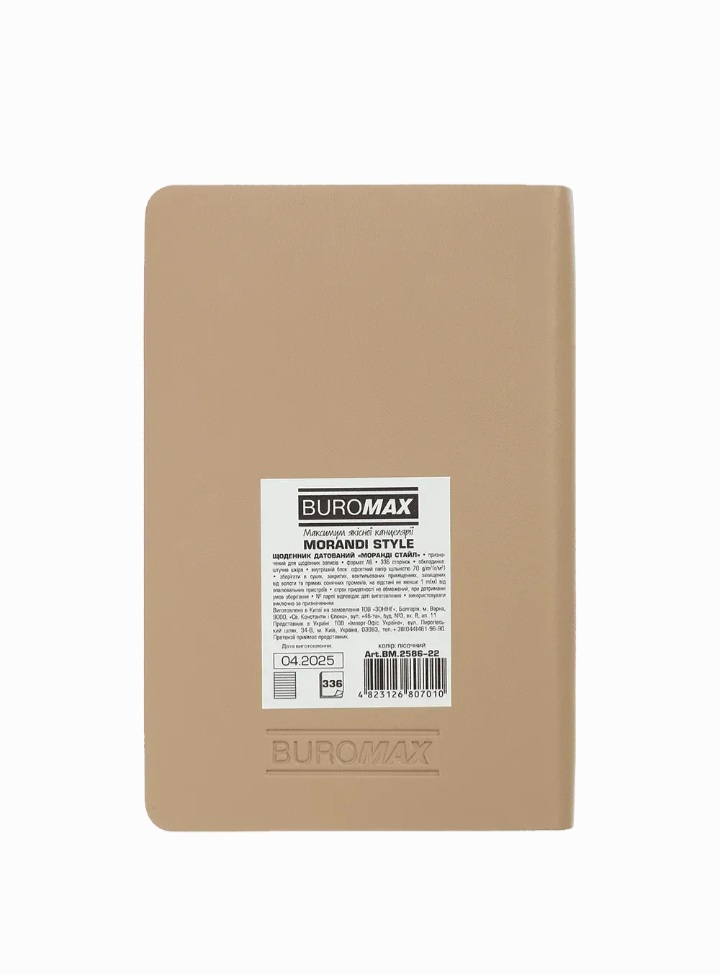 Щоденник датований 2026 Buromax Morandi Style зі штучної шкіри А6 336 сторінок пісочний