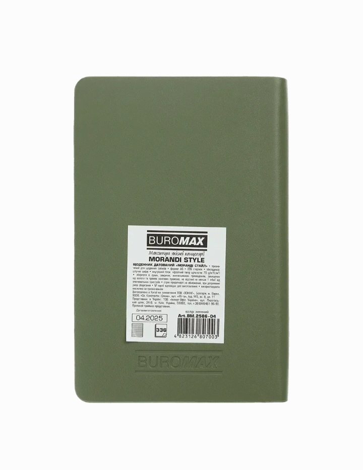 Щоденник датований 2026 Buromax Morandi Style зі штучної шкіри А6 336 сторінок зелений