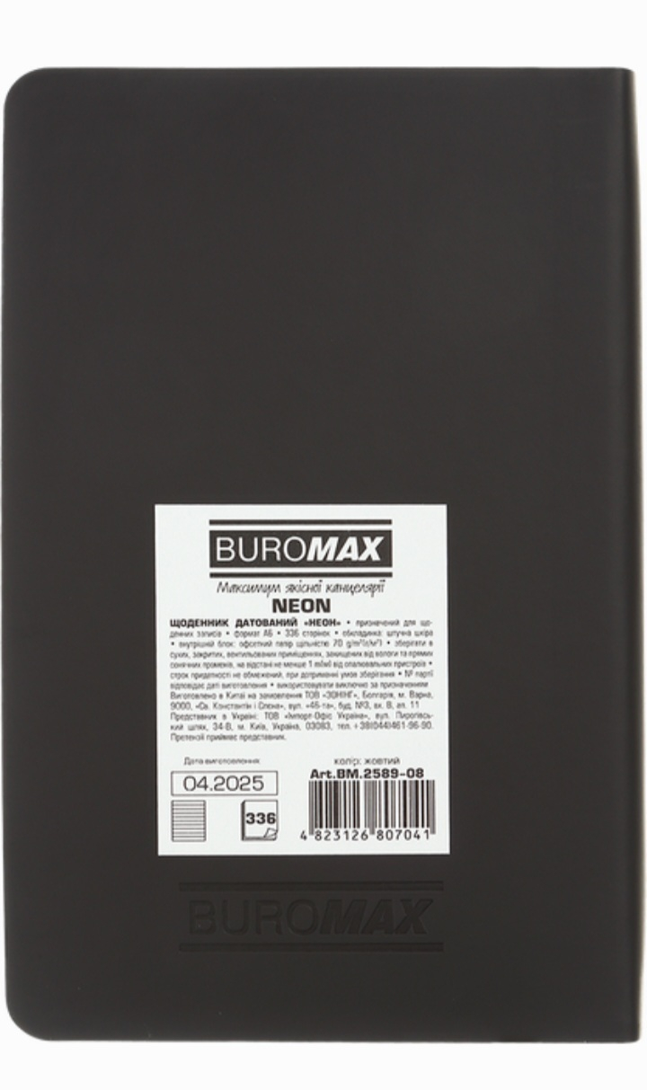 Щоденник датований 2026 Buromax Neon зі штучної шкіри А6 336 сторінок чорний з жовтим