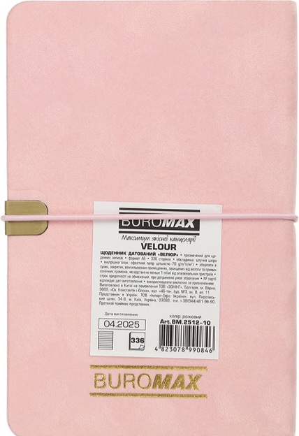 Щоденник датований 2026 Buromax Velour зі штучної шкіри А6 336 сторінок рожевий