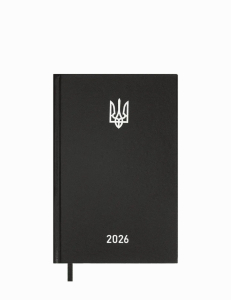 Жорстка обкладинка щоденника AIRY виконана з бумвінілу в лаконічному дизайні з нанесенням Тризуба та року срібною фольгою на лицьовій стороні.