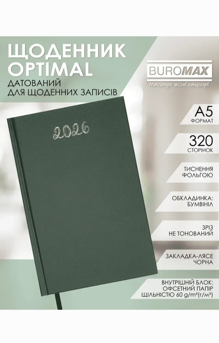 Щоденник датований Buromax Optimal A5 з бумвінілу 320 сторінок зелений