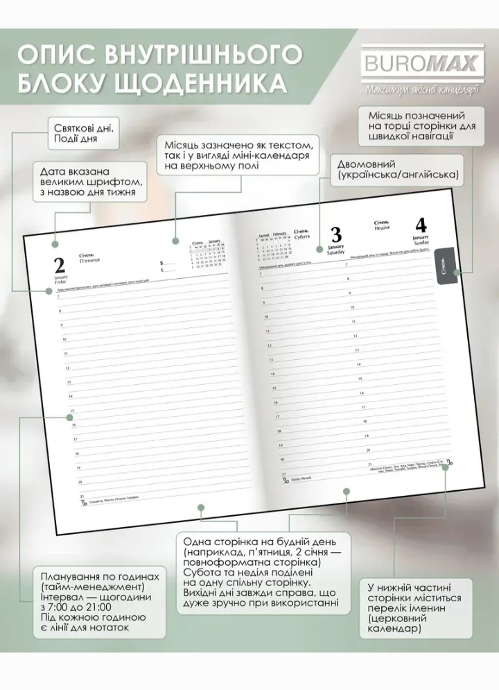 Щоденник датований Buromax Zest A5 з бумвінілу 320 сторінок зелений