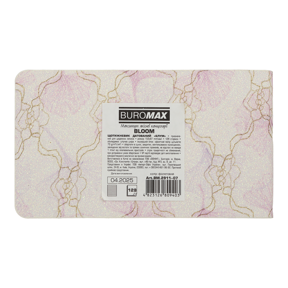 Щотижневик датований 2026 Buromax Bloom зі штучної шкіри 153x87 мм 128 сторінок фіолетовий