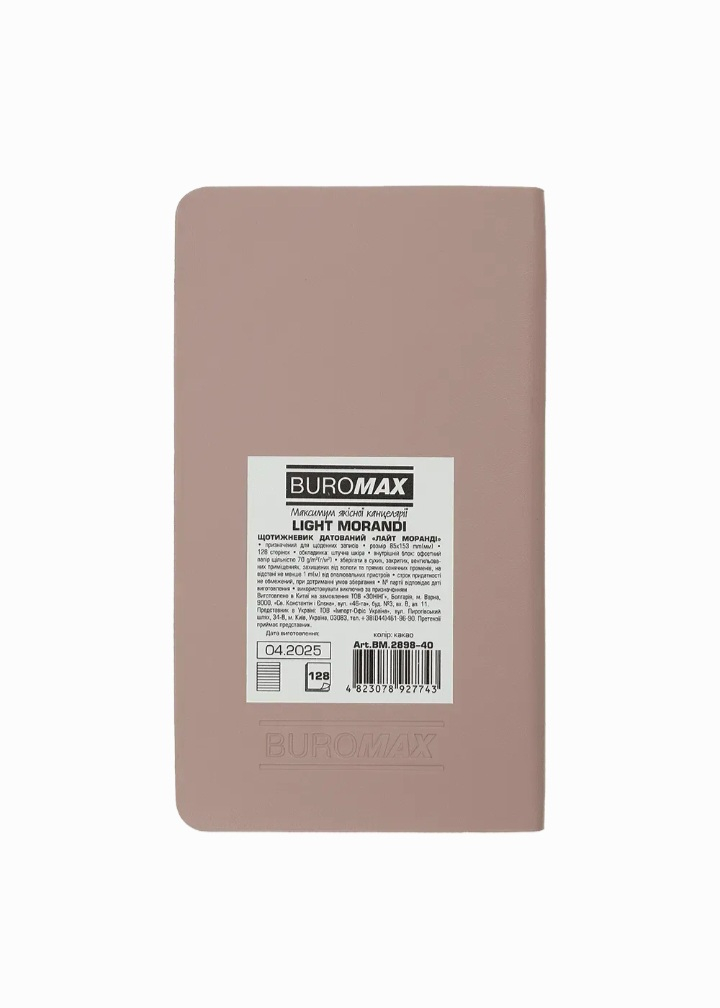 Щотижневик датований 2026 Buromax Light Morandi зі штучної шкіри 85x153 мм 128 сторінок какао