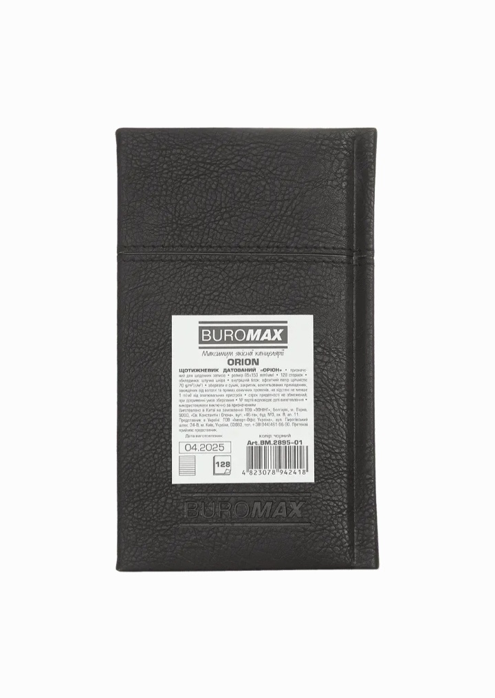 Щотижневик датований 2026 Buromax Orion зі штучної шкіри 85x153 мм 128 сторінок чорний