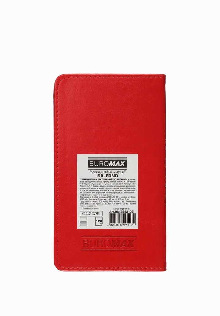 Щотижневик датований 2026 Buromax Salerno зі штучної шкіри 85x153 мм 128 сторінок червоний