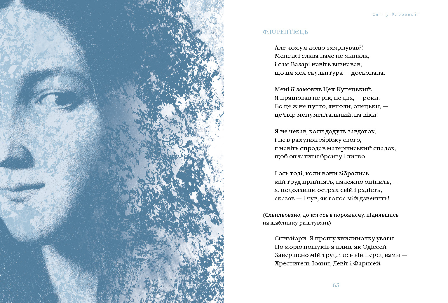 Видатний, але напівзабутий скульптор італійського Відродження Джованфранческо Рустичі був заново відкритий в Італії 2010 року. Однак Ліна Костенко звернула на нього свій погляд на чверть століття раніше — в середині 1980-х. У поетичному шедеврі «Сніг у Флоренції» сплітаються філософія мистецтва і пронизлива любов, психоаналіз і бурхливі події в Європі ХVІ століття. Вишукано і фантазійно побачена в драматичній поемі ренесансна Флоренція стає глибоко актуальною метафорою свободи митця, а відтак його здатності творити непідвладний часові «сад нетанучих скульптур».