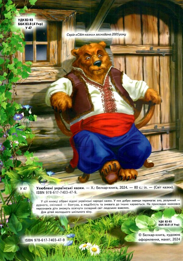 У цій книжці зібрані відомі українські народні казки. У них добро завжди перемагає зло, розумний дурного, сміливий — боягуза, а жадібність та зневага до інших караються. На прикладах казкови> персонажів діти зможуть осягнути складний світ людських взаємин.